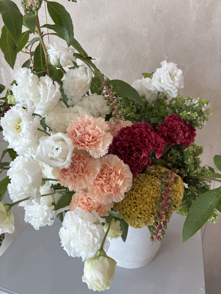 カーネーションが効いた豪華で華やかなアレンジになっています。