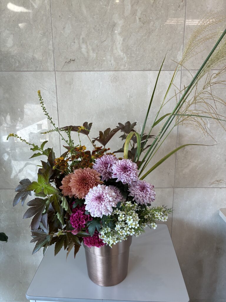 マムのお花の色味が可愛らしいです。