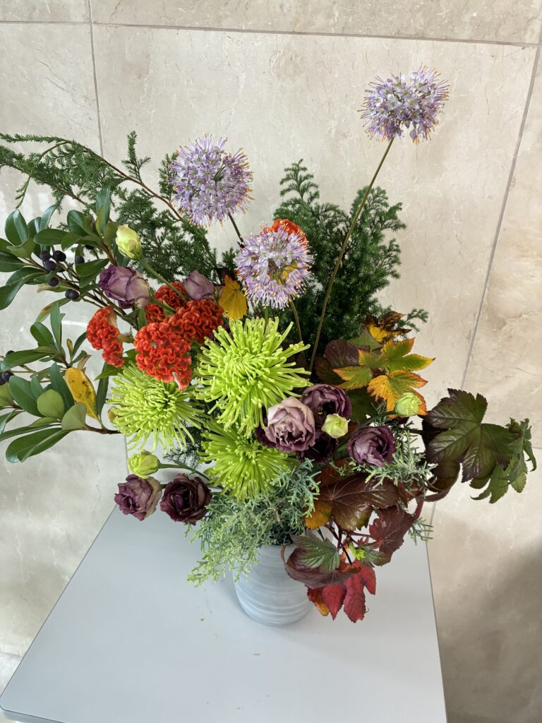 日本の秋の風物詩ともいえる“ススキ”が入ったアレンジです。
