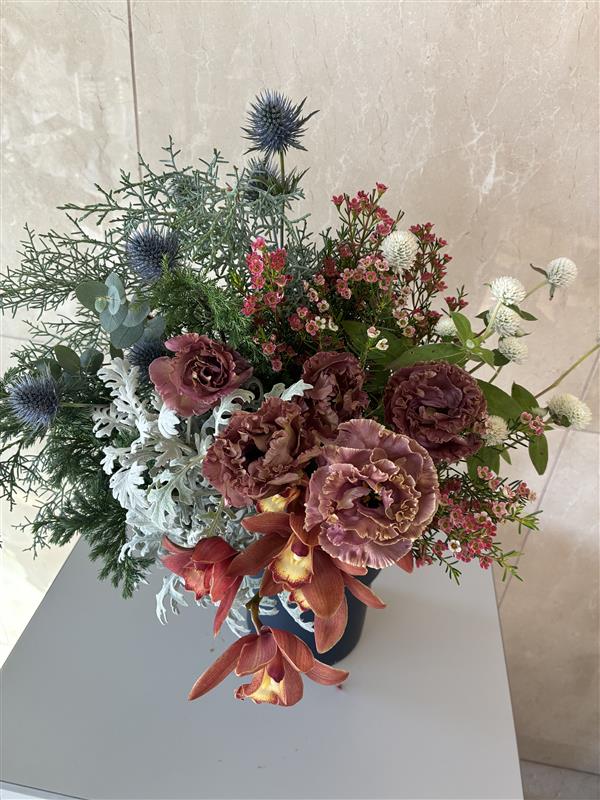 荘厳さを感じさせるアレンジがブルーアイス(針葉樹)の香りでさらに引き立っています。